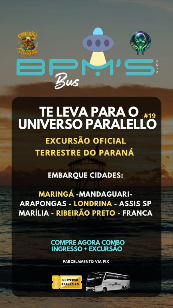 A BPM’s Bus confirmou a realização de sua excursão oficial para o Festival Universo Paralello 2026/2027, com saída programada para o dia 25 de dezembro de 2026, às 6h, e retorno previsto para 04 de janeiro de 2027, às 18h30. A caravana atenderá diversas cidades da região Sul e Sudeste, incluindo Maringá, Mandaguari, Arapongas, Londrina, […]